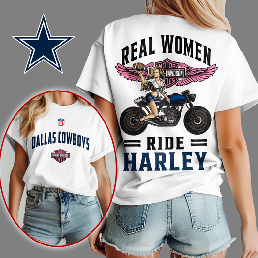 DC Premium NFL Real Women Ride Harley 3D Shirt DDT CTND