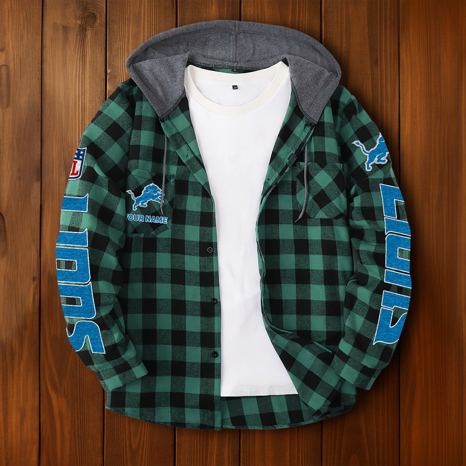 NFL x DET Personalized Flannel Hoodie Shirts HLP