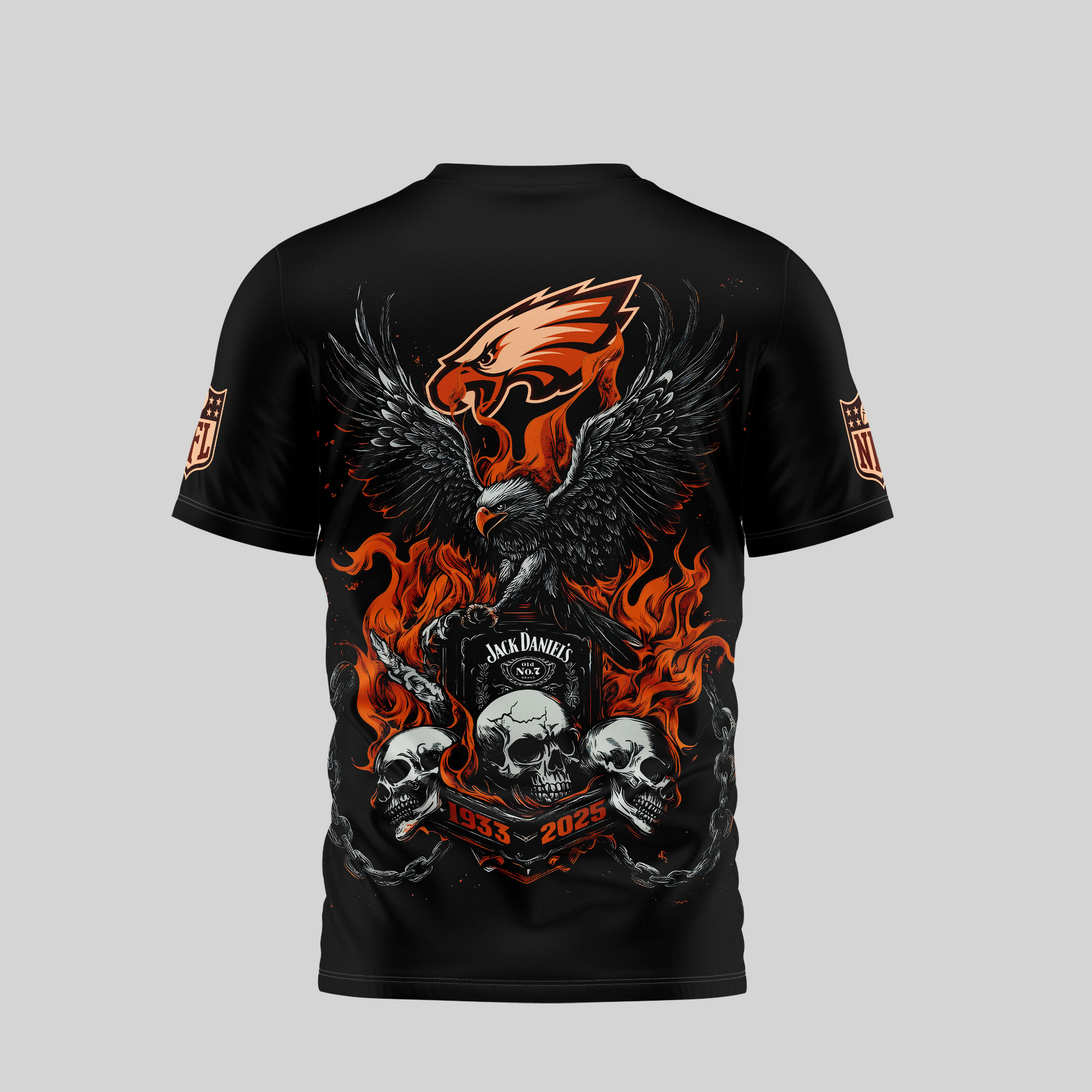 PE Premium NFL Flaming Eagle Skull T-Shirt DDT CTND
